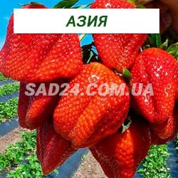 Азия – новая перспективная клубника для промышленного выращивания, селекция Италия. Данный сорт садовой земляники относится к ранне-средним сортам. Сбор урожая с первых чисел июня. Куст с мощным листовым аппаратом ярко-зелёной окраски, раскидистый. Цветоносы крепкие, высокие. Ягоды конусообразные, крупные, средней массой около 40 - 50 г и крупнее. Поверхность блестящая, ярко-красной окраски. Мякоть плотная, светло-красная, высоких вкусовых качеств, очень ароматная, с земляничным привкусом. Урожайность высокая, 600-800г с куста, и более. Плодоношение длительное, растянуто на 3 недели. Транспортабельность высокая, отлично переносит длительную транспортировку. Сорт Азия пригоден для выращивания как в открытом грунте, так и в теплицах. Рассаду высаживается в осенний и весенний период.